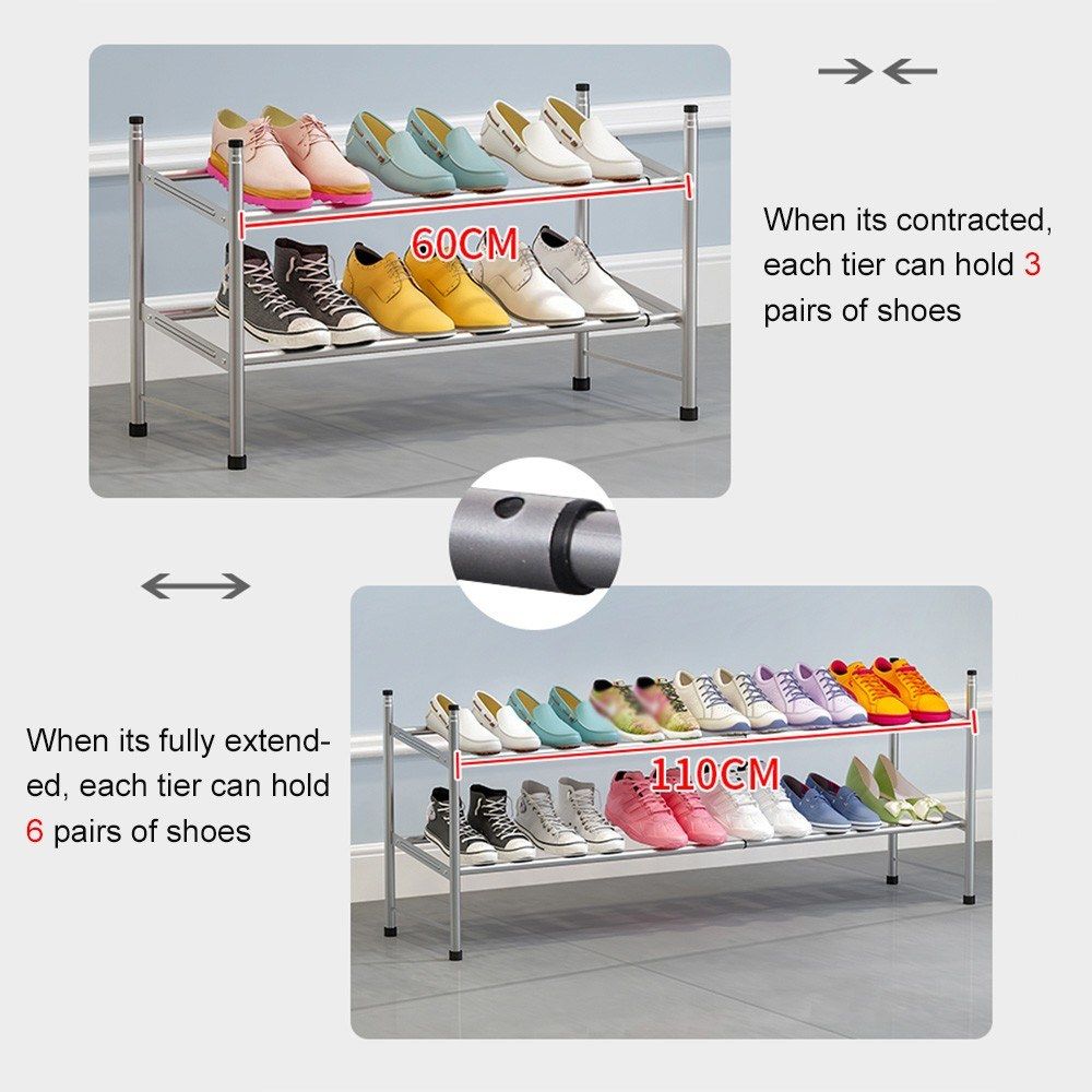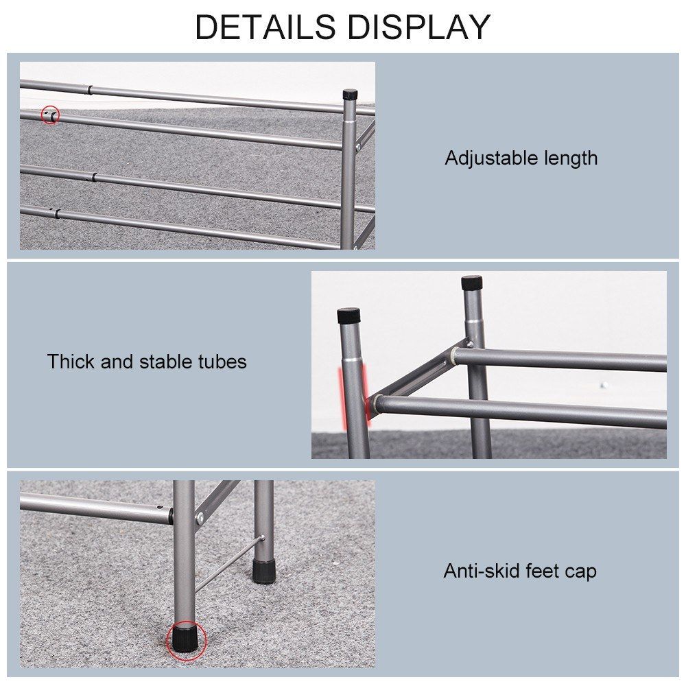 Adjustable Structure - Constructed with telescopic tubes, its length is adjustable from 60cm to 110cm, which allows for more space for holding shoes, perfect when family and friends visit.
