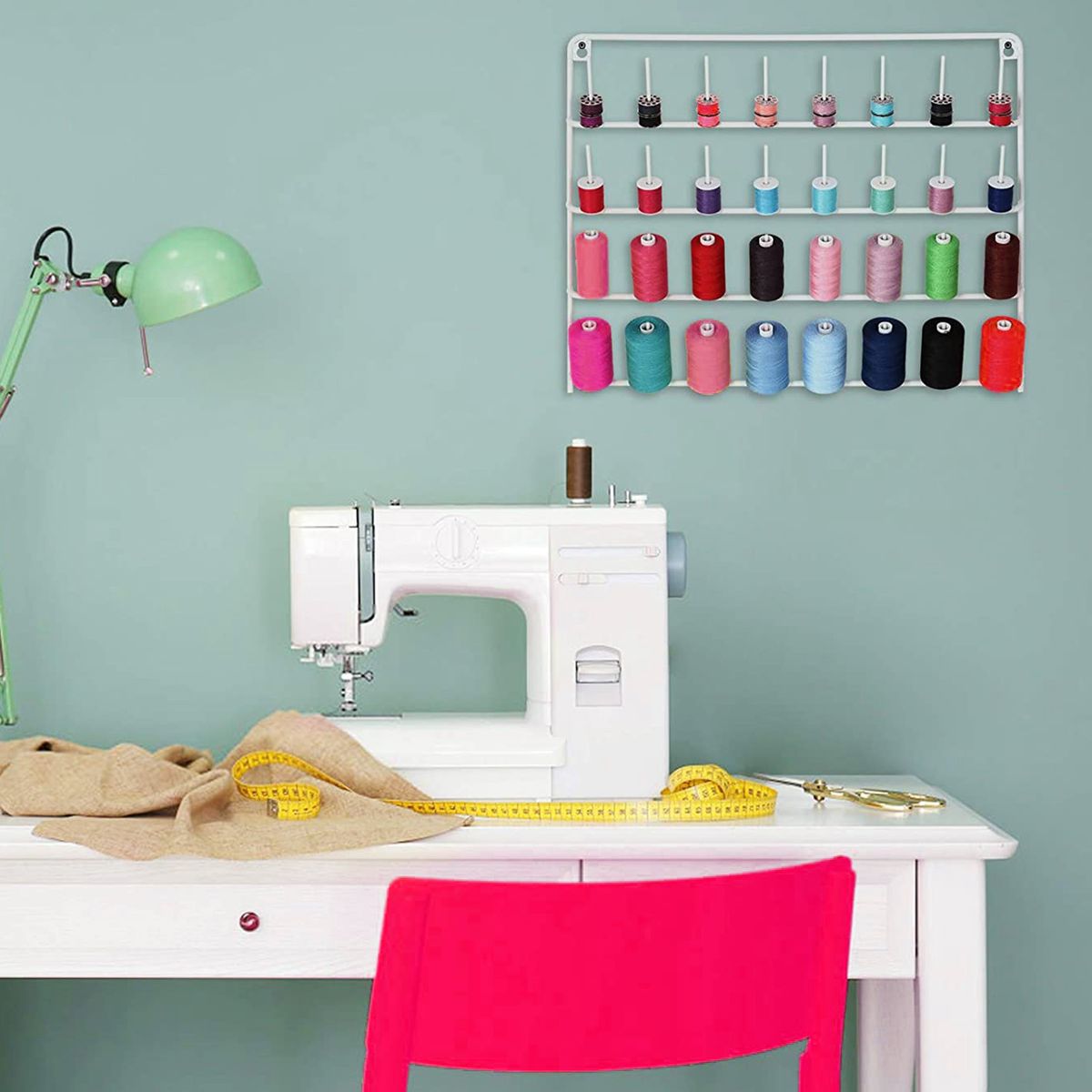 Premium contruction for superior appearance and durablilty32-spool thread rack for holding sewing, quilting, embroidery spools and most mini cones.The simple design make it easy to match with any room decor.The spindles accommodate a wide variety of spool or cone sizes to store all your thread.Easy to install and save space. Hanging colorful threads to decor your home.