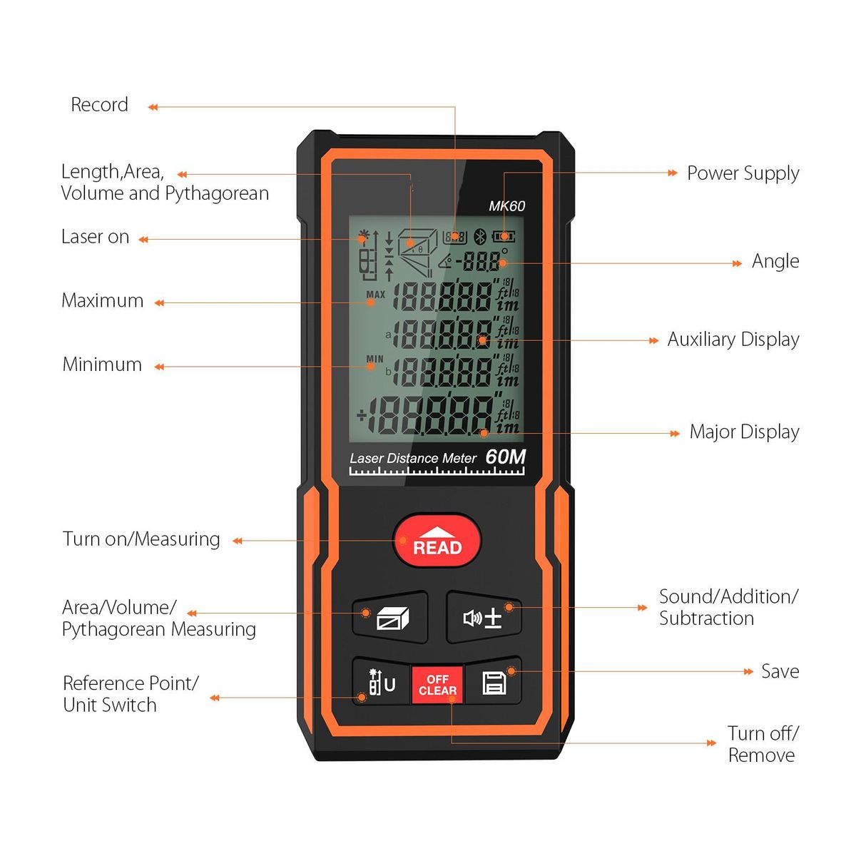 Buy Meterk Handheld Digital Laser Distance Meter Portable Area Volume Measurement Tool Range Finder High-precision Rangefinder Data Storage Memory Function LCD Display Backlight Electronic Angle (60m) in Nigeria