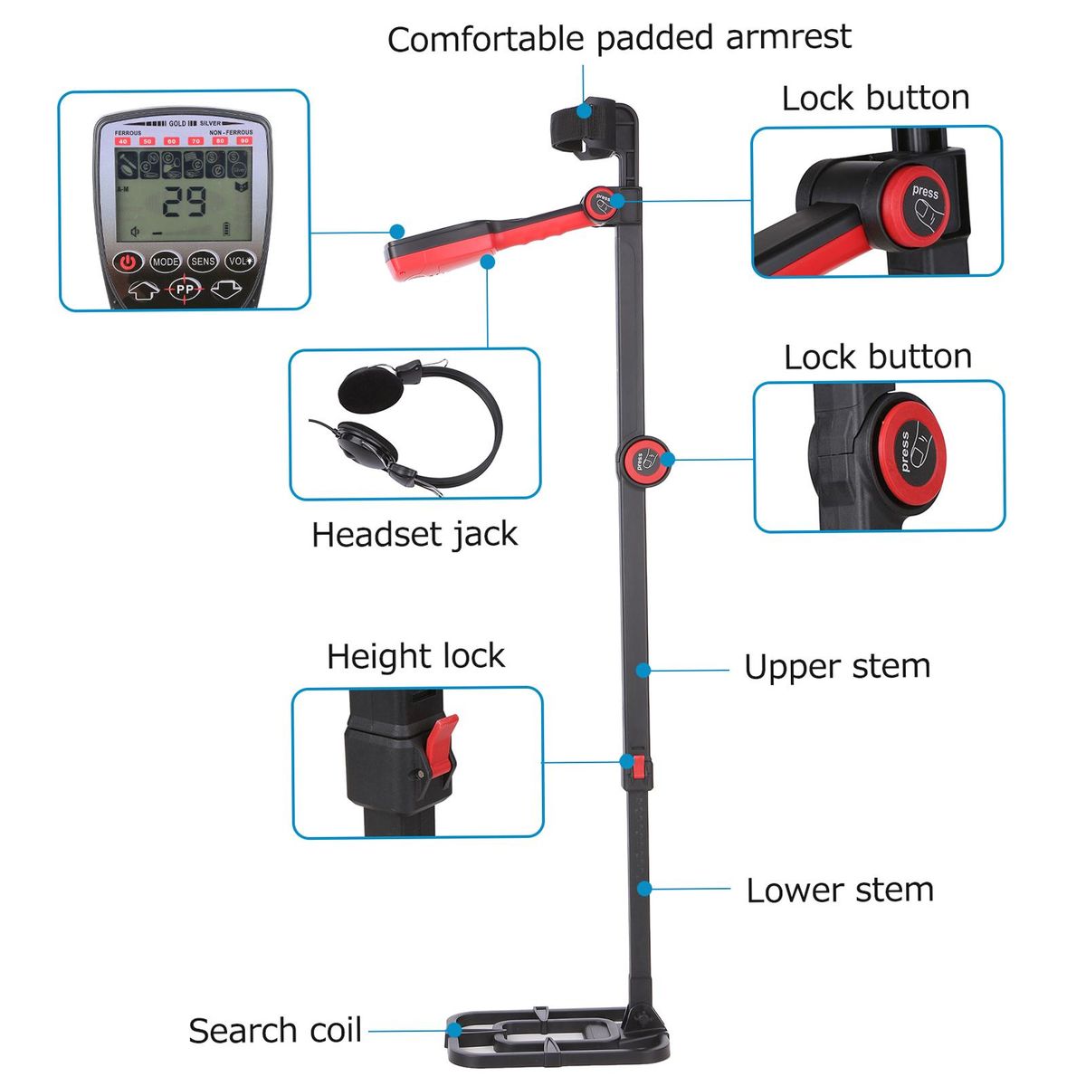 Buy Meterk Metal Detector High Accuracy Metal Finder LCD Display Adjustable Stem All Metal Pinpoint Disc Memory & Jewelry Mode 11 Inch Waterproof Search Coil with Shovel Bag for Detecting Gold Coin Treasure in Nigeria