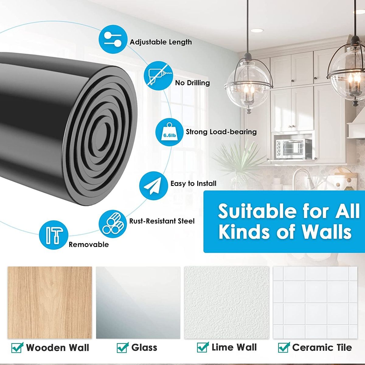Buy MEXAU 1Pack Spring Tension Curtain Rod 26-39 Inch Rods Black in Nigeria