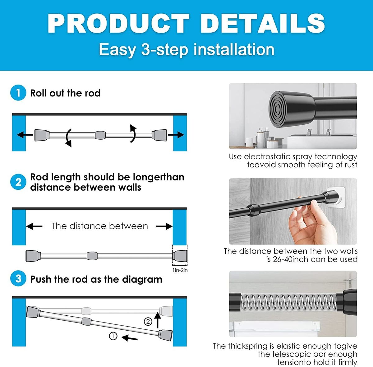 - 【Package Specifications】Black Curtain Rod 1pc It can be retracted without drilling, easy to install and easy to use.