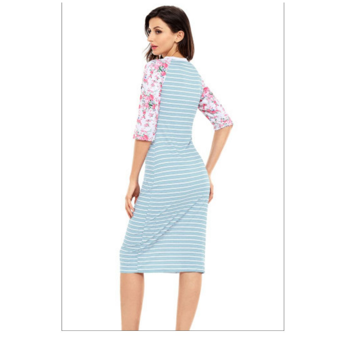 Buy Mfed Blue White Stripe Floral Sleeve Midi Dress in Nigeria
