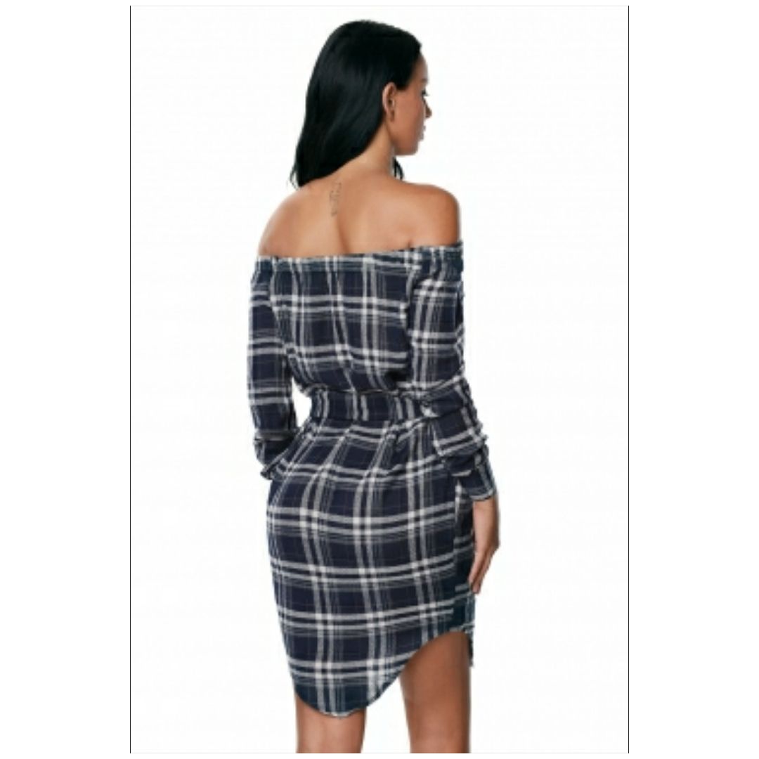Buy Mfed Button Down Off Shoulder Plaid Shirt Dress With Belt in Nigeria