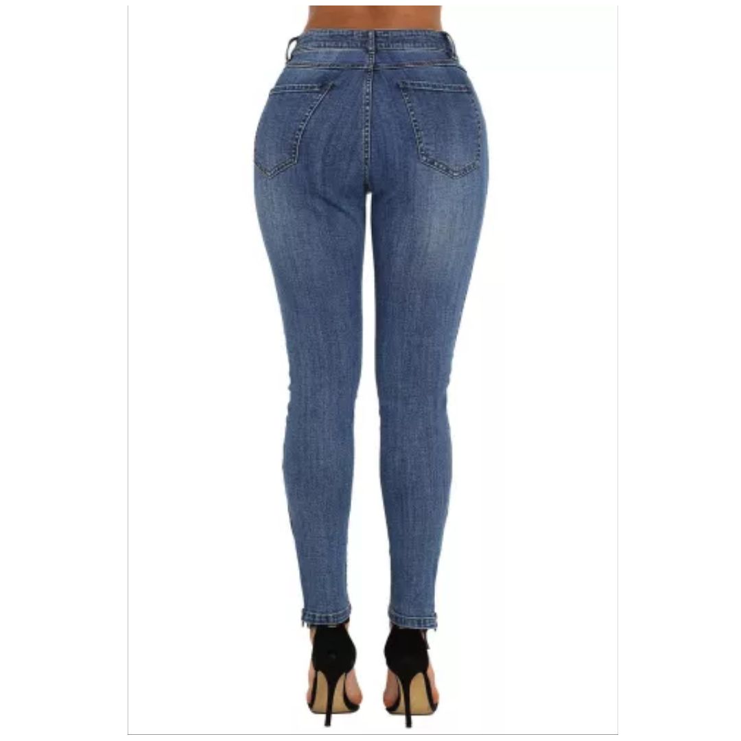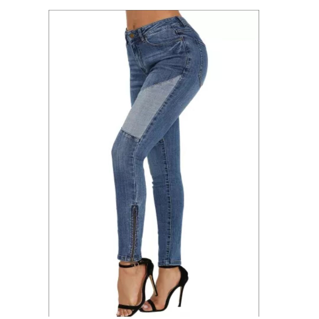 Color block design in the front is very chic and trendyHigh waist jeans are very basic and versatile for daily wearSkinny jeans are made of soft ski friendly and stretchy materialThe ankle length jeans perfectly match with fashion tops and high heels