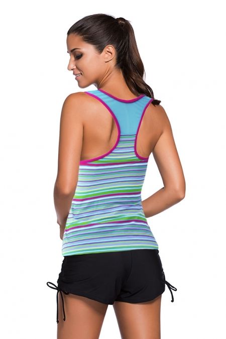 Mfed colorful stripe print mesh splice tankini top |