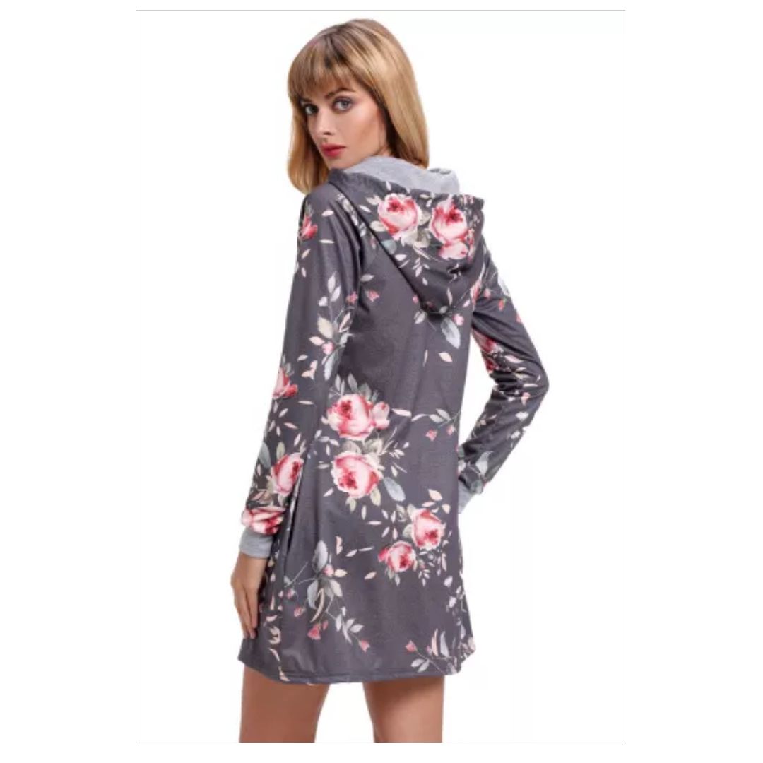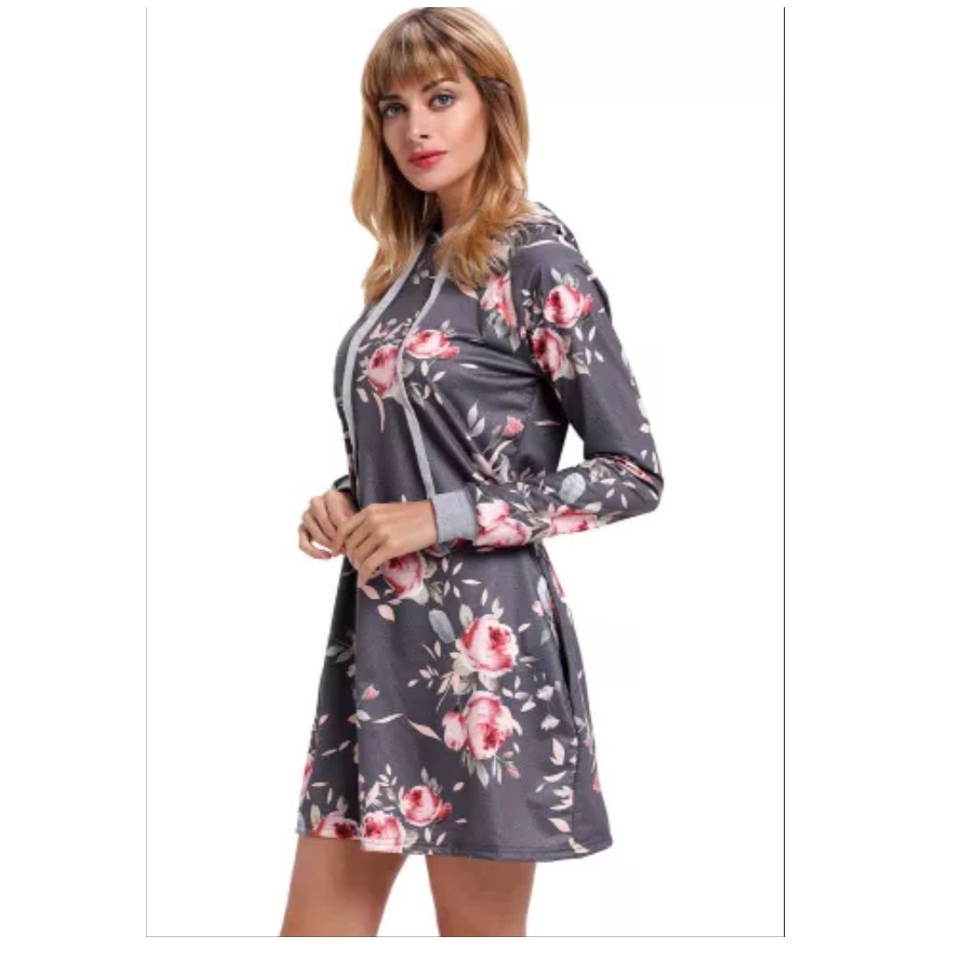 Mfed grey floral print drawstring hoodie dress |
