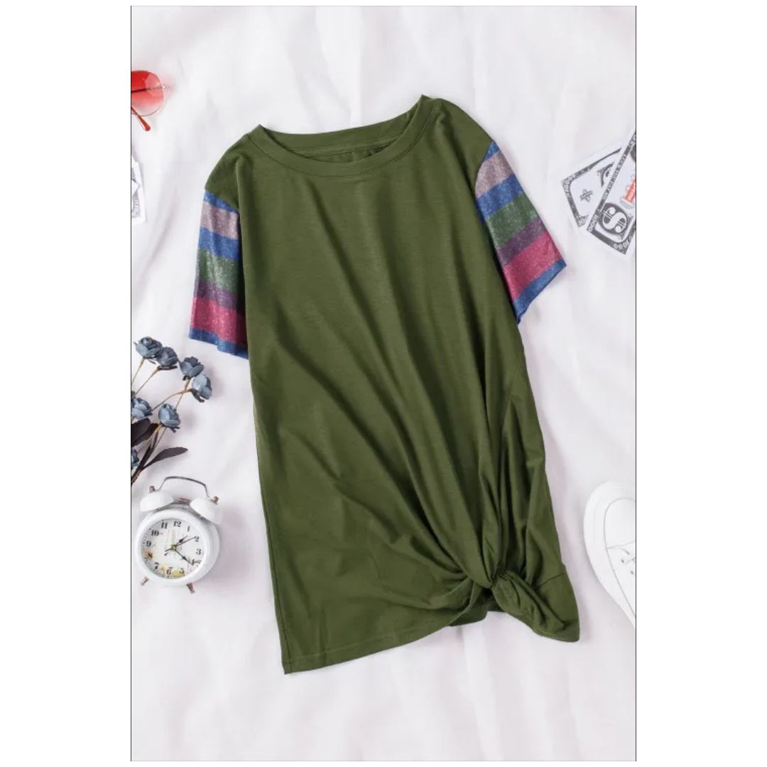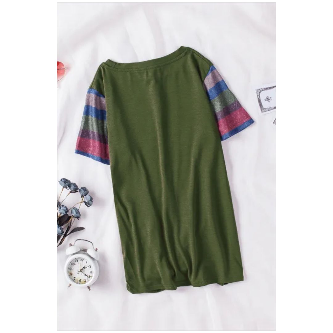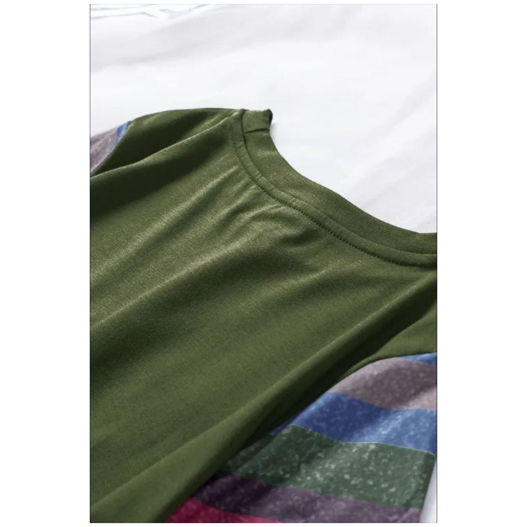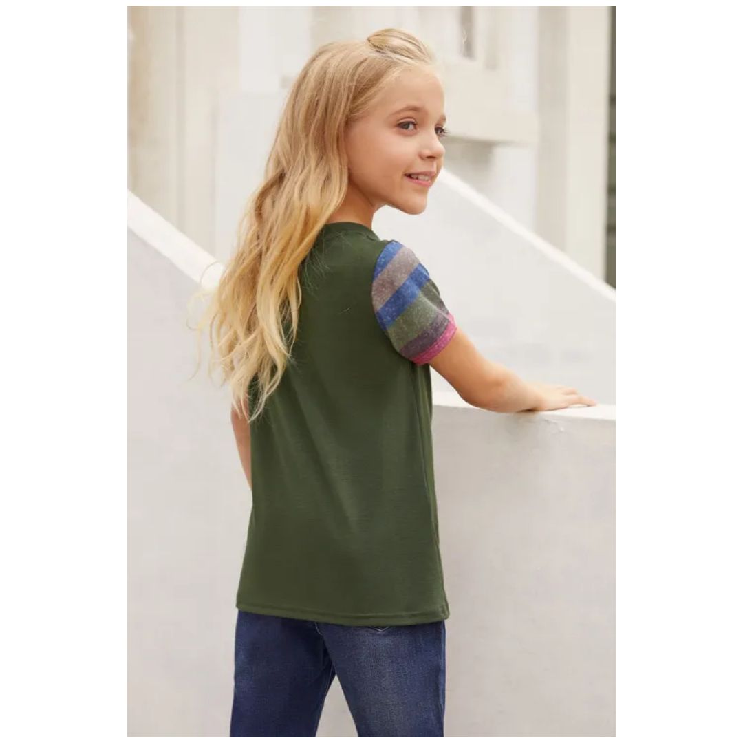Mfed olive green girls striped sleeves tee |