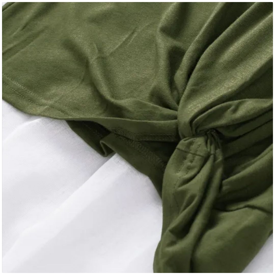 This little girls top adopts premium cotton fabric crafted Very soft and healthy for fine quality made, breathable and cool for summer The patchwork striped sleeves design is chic which makes a finishing touching Round neck, short sleeves and straight hemline with twist front Wholesale girls top to make your kids cute and fashionable.
