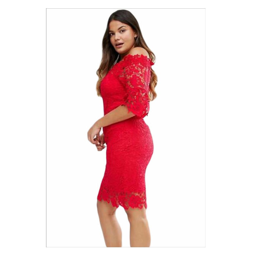 Buy Mfed Red Hollow Out Floral Lace Plus Off Shoulder Dress in Nigeria