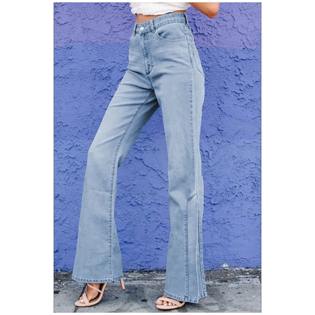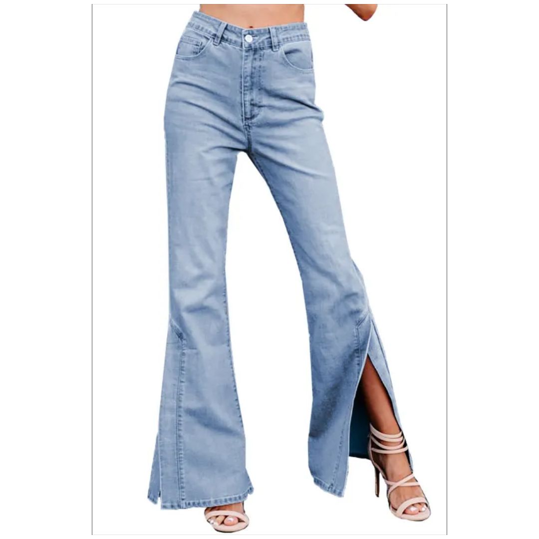 High waist jeans are great to show off sexy curveThe denim fabric of these jeans is comfy and durable5 pockets design, button & zipper closureFlare pant leg with side slit detailsQuality jeans wholesale at affordable prices