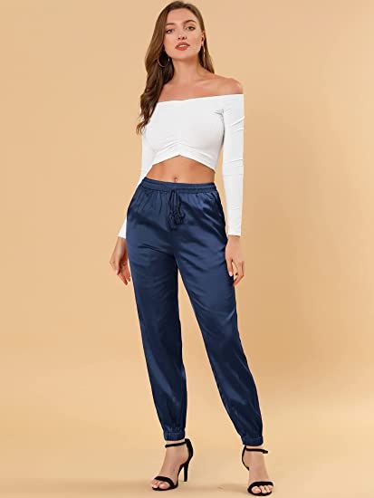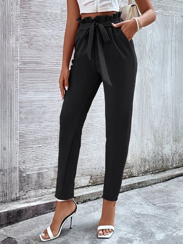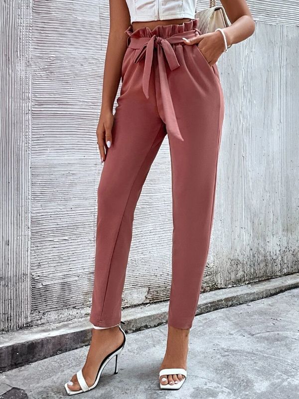 Buy Mfed Spot Ladies Linen Blend Shirred Cuff Crop Trousers in Nigeria