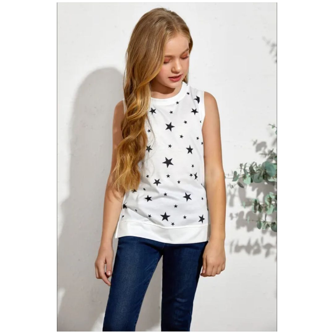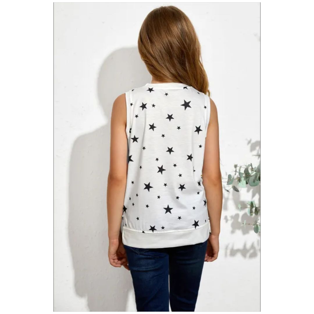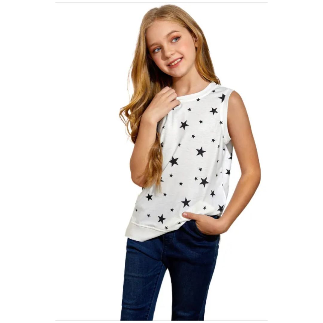 The cute Camisole top with the star print will make your girl more fashionable The chic sleeveless features a crew neck, casual and suitable for most body types to wear Casual tank top are perfect for daily, going out, school party, holidays and casual, and it is also good for taking pictures The summer business tank is easy to pair with jeans, short, not only look good, unique style, but also make girls happier and more relaxed.