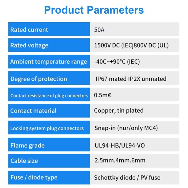 Plug and play, you can assemble the solar Y connector quickly and easily. Just press the built-in lock on the male connector to disconnect. Type:M/FF and F/MM Solar Connector