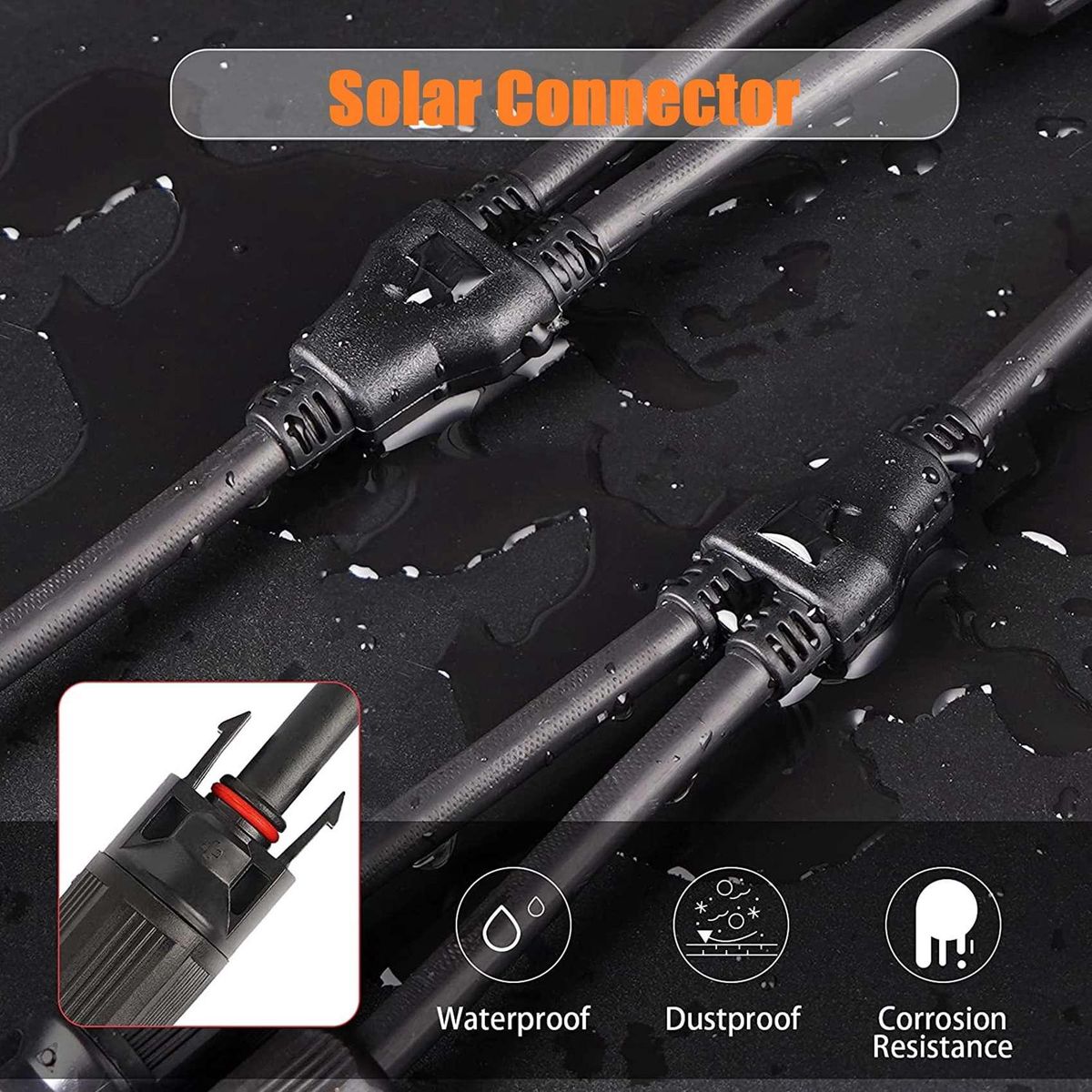IP67 waterproof, the waterproof ring in the male connector is designed to be waterproof and dustproof. Using high-quality materials, the solar connector can resist UV rays and high temperatures.