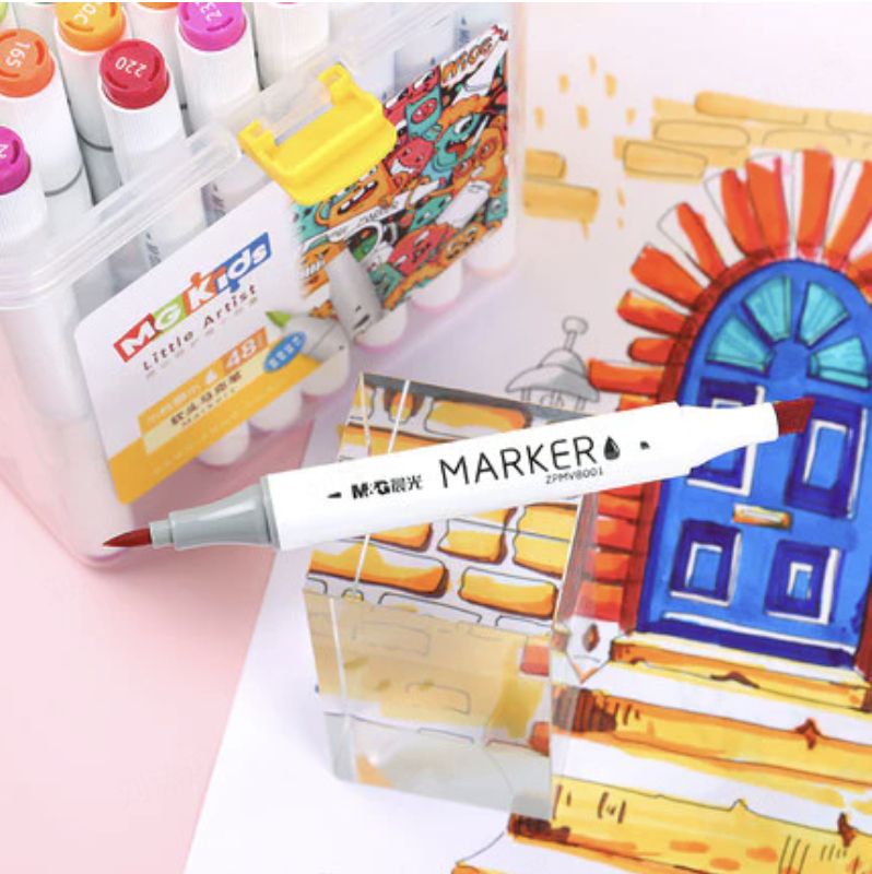 Double-ended fiber soft pen, hook and color in one stroke. New color matching, suitable for children's color matching. With a transparent base, easy to take and neatly organized The outer box is equipped with a handle, easy to carry. The nib is numbered for easy color checking M&G Soft Brush Double-Tip Round Marker. 36 colors. -Vivid and smooth color ink with quick drying and waterproof effect. -Round and chisel double tip for fine line, broad line, and large area coloring. -Comfortable ergonomic triangle-shaped body. -Portable PP box for easy carrying and storage-Good Quality-easy to use-Perfect Material for customers