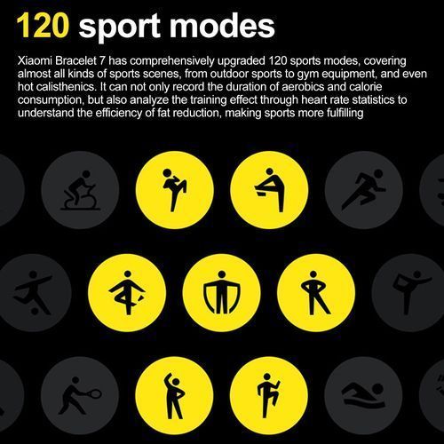 [120 Sports Modes]MI band 7 supports 120 sports modes, covering almost all kinds of sports scenes, from outdoor sports to gym equipment. It can not only record the exercise time and calorie consumption, but also analyze the training effect through the statistics of heart rate.