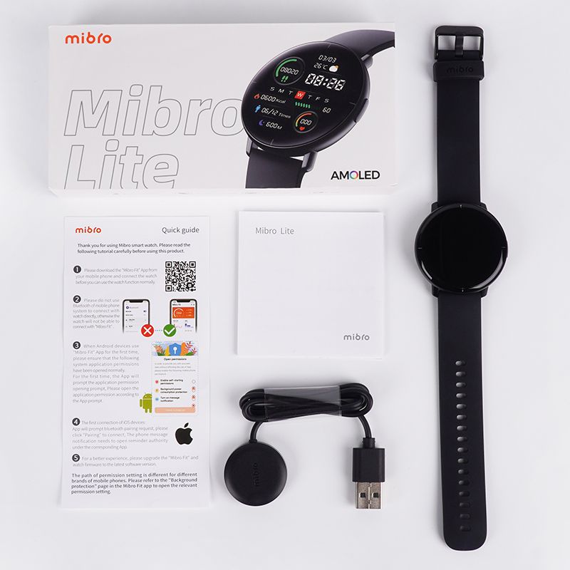 Feedback: 1. Your feedback is the most important for us, because it can help us to improve product and service quality. 2. If you are satisfied with our items, please leave a positive feedback, 5 stars rating and share the its pictures to us. 3. If you have any question about our item or service, please don't leave negative feedback to us. You can complain problem and give us suggestion. We will respond within 24 hours and try our best to solve the problem. We will give free counpon thanks for your help. Negative feedback can not help us improvement. We attach great importance to your question and devote to providing more quality product for our customers.If you have any problem with the item you received,you can contact us to resolve it. If you are satisfied with our products, hope you can give us 5-star praise as encouragement, thank you for your support! Warranty Time: 12 months warranty for listed Cellphones. 6 months warranty for listed Tablet. 3 months warranty for listed Earphones/Smart Watches/Wrist Bands. *No warranty for free gift/freebies/certain accessioes. Warranty Process: Please contact us, if you have any problem with the item you received, we are appreciated that you could leave us message about the problem to tell us details about what kind of the problem you met. Our technicians need to check the video about the problem and your operating process, so please shoot videos about it. And post the link of the Video when you leave us messages. After checked your message and videos, operation methods will be provided. If the problem still be confirmed after tried all those methods, we will provide you solutions according to specific conditions as below: Partial Compensation Replacement Return & Please kindly understand that any unproper use or human damages are not included in warranty. We strongly suggest all buyers to check the package before logging in, and please also record the unpacking video to avoid if there is something wrong . Q: Why is it not sold with film? A: The glass is tempered, and the surface is electroplated with anti-fingerprint oil technology, which is not only anti-fingerprint oil, but also scratch-resistant. Mibrois a brand of Zhenshi Technology, which is invested by Xiaomi and Longqi and is one of Xiaomi's main ecological chain members. We are keen to provide users with affordable high quality high tech products.We design, develop, and produce unique intelligent hardware, and ensure product quality through a strict product quality control system,Our mission is to connect freedom with technology and simplify people's life! Mibro Lite Smartwatch Men Women's Watch Screen Support Multi-language Ultra-thin body smart watch For Xiaomi Huawei Honor Phone Name : Mibro Lite Dimension : Diameter 43 mm,thickness 9.8 mm(without heart rate boss) Band Size : Width 20 mm,Expanded length 245 mm Weight : 48g(including strap) Material : Metal+Plastic+Liquid silica Diaplay : 1.3 inch Full circle color HD screen Battery life : 8days for daily mode,10 days for basic mode Charging port : Magnetic charging port Bluetooth : Bluetooth V5.0 Sensor : Optical heart rate sensor, Spo2 sensor, accelerometer Operating Temperature : -20℃~45℃ APP : Mibro Fit APP Support : Support Android 5.0 and above,IOS10.0 and above(Functions vary with specific watch models,mobile phones and countries) Watch Languages : Simplified Chinese,English,France,Spanish,Portuguese,Russian,Japanese,Korean,Thai,Arabic,Indonesian,Vietnamese,Turkish,German,Italian,polish,(Persian) APP Languages: Simplified Chinese,English,France,Spanish,Portuguese,Russian,Japanese,Korean,Thai,Arabic,Indonesian,Vietnamese,Turkish,German,Italian,polish,(Persian) Reminder Messages : SMS, Gmail, Skype, Twitter, Facebook, WhatsApp, Instagram, VK, Snapchat, etc. Message Language : Synchronized language with watch firmware Other Features : Remote photo-taking, Music playback, Find watch, Phone muting, Incoming call notification, Do not disturb, App message alerts, Calendar reminder, Event reminder, Weather, Timer, Calculator, Stop watch, Alarm, Screen locking, Charging progress display, OTA upgrades. Mibro Lite A True Reflection Of Your Strength smart watch with high quality and low price HD Screen - 24/7 Heart Rate Monitoring - SP02 Measurement - Ultra-Thin Body 15 Sports Modes - 10-Day Battery Life - IP68 Waterproof - Customize Watch Faces Display That Brings A World Of Colors 1.3 inch Screen Rich and clear colors Enjoy the visual feast The Difference Between TFT ScreenAnd Screen AmoledScreen: Clearer and more energy efficient Stay clear under strong light Electroplating anti-fingerprint feature Your Sport Mate On The Wrist 48g ultralight,less weight than an egg 9.8mm ultrathin,as thin as a biscuit 2.5D Curved glass Glossy and skin-friendly sophisticated craftsmanship A light and comfortable wear that fits you perfectly A graceful obsidian look is suitable for both fashionable and business occasion Customize Your Own Watch Face Customize a watch face to match your mood,style,or interest Have infinite fun from a dynamic watvh face 15 Sports Modes Make Sporting An Enjoyable Experience Read your fitness metrics by raising your wrist.it helps you to be your best Outdoor Running - Treadmill - Walking - Outdoor cycling - Cycling - Trakking - On foot - Yoga - Basketball - Tennis - Badminton - Football - Elliptical machine - Strength training -Free training Over A Week Long Battery Life Longer battery life brings greater vitality Daily Mode : 8 days Basic Mode : 10 days IP68 Waterproof No more worries about sweat or rainwater A Healthy Life Accessible Right Here Know your heart,Whether during workouts or sleeping,your heart rate will be detected to provide you with all-day protection Enjoy A New Healthy Life With Spo2 Measurement Whether you are working,exercising or sleeping,it keeps protecting your health around the clock Relax Your Mind And Body All-day stress monitoring and cares dor your health around the clock.Try to take breath tr
