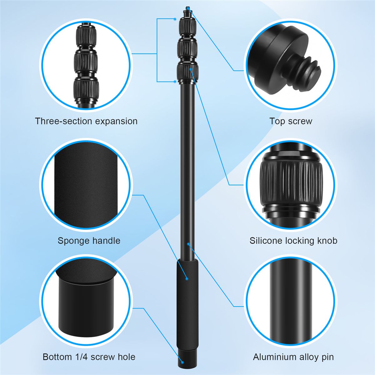 2. The 1/4 inch screw at the top can be connected to microphone, digital camera, motion camera, supplementary light, stabilizer, mobile phone accessories, etc.