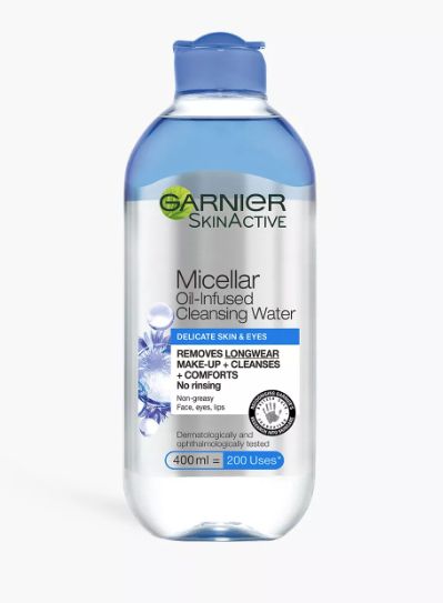 Garnier Micellar Cleansing Water gently lifts make-up and dirt from the skin to leave it free of impurities and residue to reveal skin's natural glow. The gentle cleansing formula glides over skin and effectively removes make-up without the need to rub or strain delicate sensitive skin.
