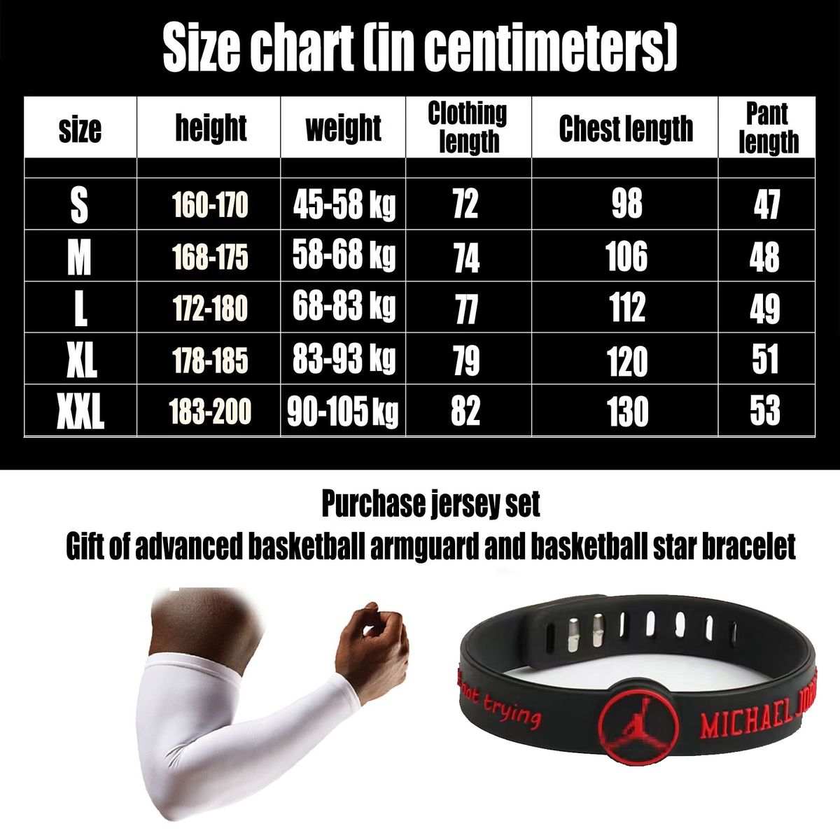 Michael Jordan played. The training uniform consists of comfortable basketball shorts and a basketball jersey. The basketball jerseys are versatile and suitable for teenagers and adults between 160 and 200 cm. Basketball sportswear has the characteristics of elasticity, breathability, wearability, hypoallergenic, softness. Free style basketball jersey does not constrain the movement. Material absorbs and lets moisture out, regulates heat transfer and provides perfect ventilation. Made from high-tech polyester, this sports shirt is a perfect gift for a young player! Suitable for everyday wear, sports, leisure, festivals and other occasions.
