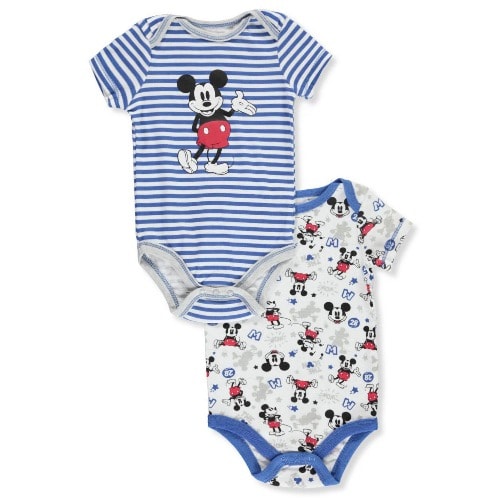 Assorted with printed designs, sayings, and prints; available in boy and girl designs and fits up to 12 months.