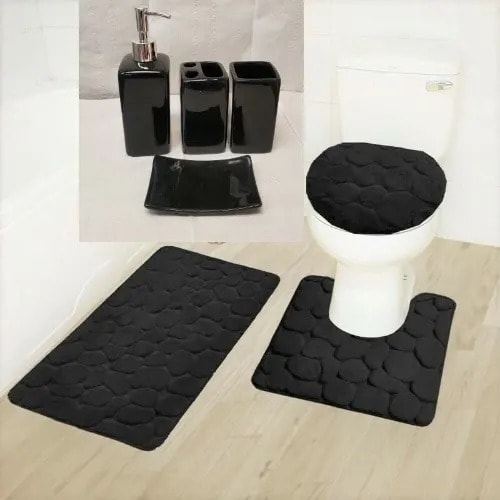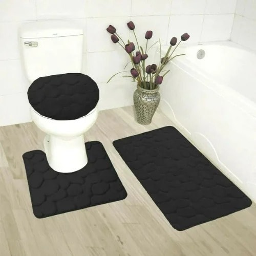 Buy Micro-fibre Toilet Set - Bath Mat + Seat Cover -3pieces - Black in Nigeria