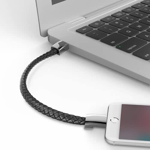 It combines micro USB/lighning 8pin transmission data cables and fashion bracelet.It is made of genuine leather/PU leather &24K gold plating,black zinc-alloy or silver or rose gold clasp.The two ends can be buckled,you can wear it on your hands,attach it on your bag.It is a small,exquisite,fashion data charger bracelet cable.