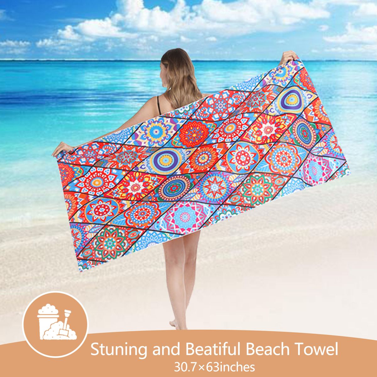 4. Durable and Practical: The beach towel has bright color, soft texture and nice drape, smooth and comfortable, durable and practical. The beach towels can be placed directly over sand or grass and are the perfect size for adults or children.