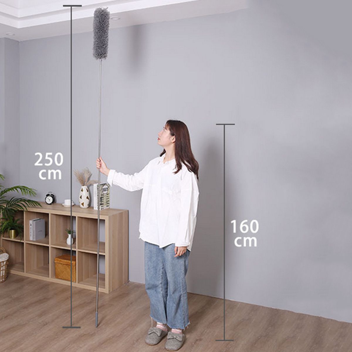 The ultrafine fibre duster is telescopic and flexible to clean hard-to-reach areas, such as ceiling fan, furniture, keyboard and spider web. It allows you to do housework more effectively, no need to worry about cleaning high ceilings, easily reduce the burden on the body.