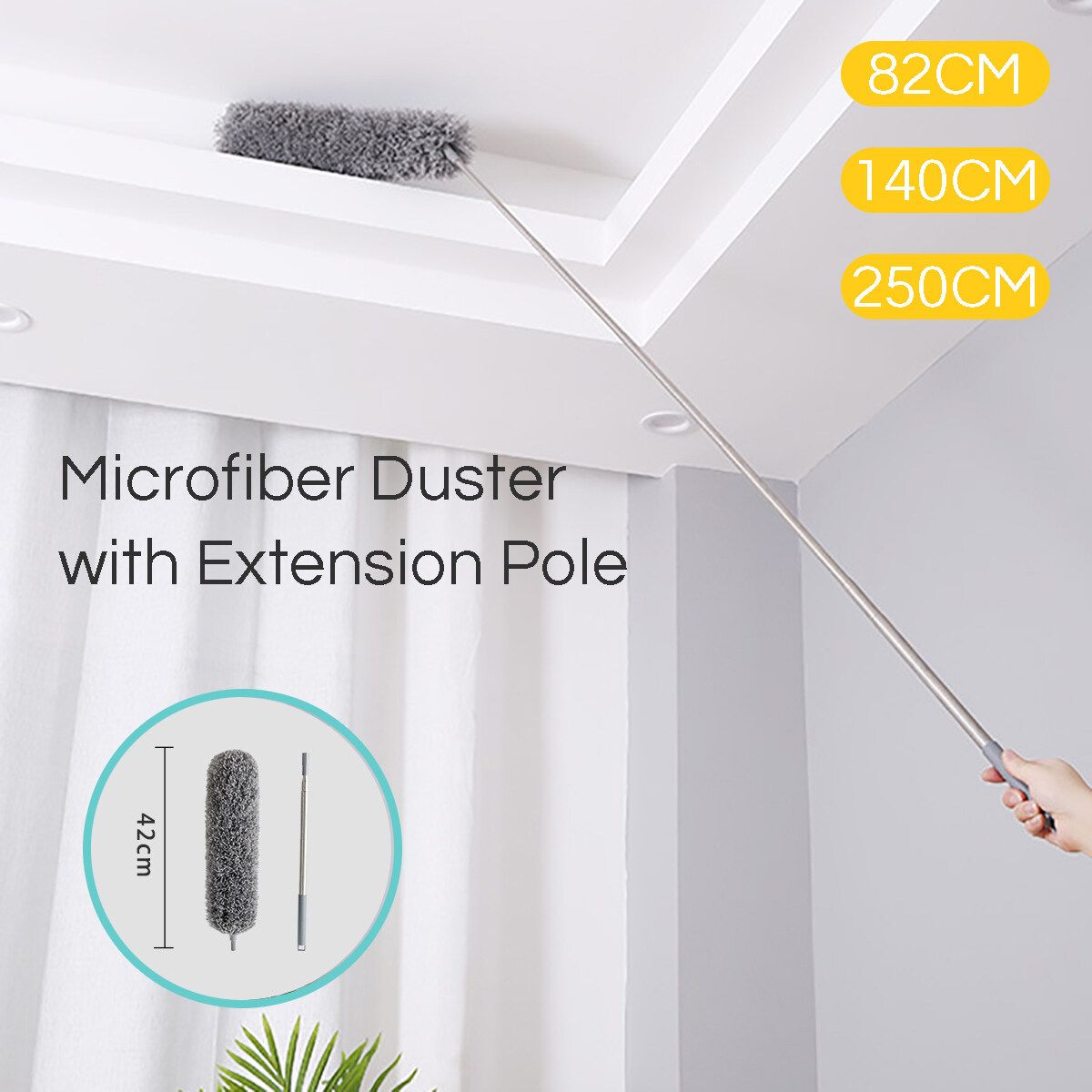 Similar ItemsDescriptionUpgrade Extra Long Microfiber Duster with Telescoping Extension Pole and Bendable Washable Head, Hypoallergenic Lint Free Duster for Cleaning Roof, Blinds, Cobwebs,Ceiling Fan, Furniture
