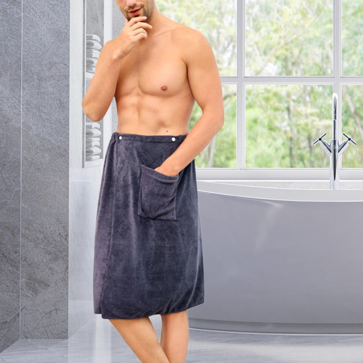 【Design】: Wearable men shower cover up help to prevent the towel wrap from droping out. size 70cmx140cm/27.56inchx55.12inch.