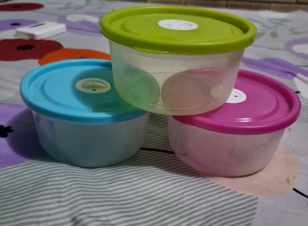 - This multi-color food storage container is a collection of practical, space-saving mixing, measuring, and prep set. Their innovative design allows the individual pieces to be nested together, occupying minimal space. There are 3 same sized sets available