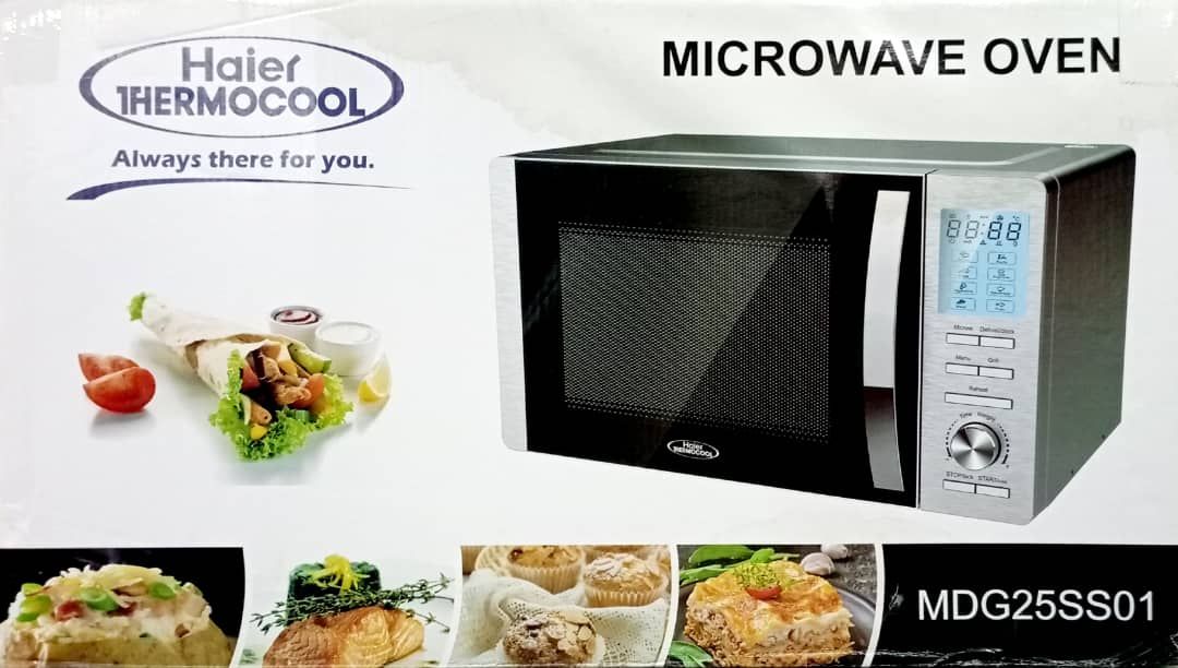 HAIER THERMOCOOL MICROWAVES and decide which one is right for you and your kitchen. Whether it's defrosting, warming or properly heating up, these microwaves are sure to get the job done giving you no stress and more time. Haier thermocool Microwave Ovens are durable and effective; it is made of premium materials for easy maintenance amongst others. Brilliantly designed with large and spacious capacities, they are portable while still very functional and sure to complement your kitchen interior. It has several auto programs and power levels for more efficiency; it is easy to use, just plug-in and it is ready for use. It is a fast and easy way to cook and heat food; it cooks uniformly and has different defrost settings for good and effective defrosting of your foodstuffs.