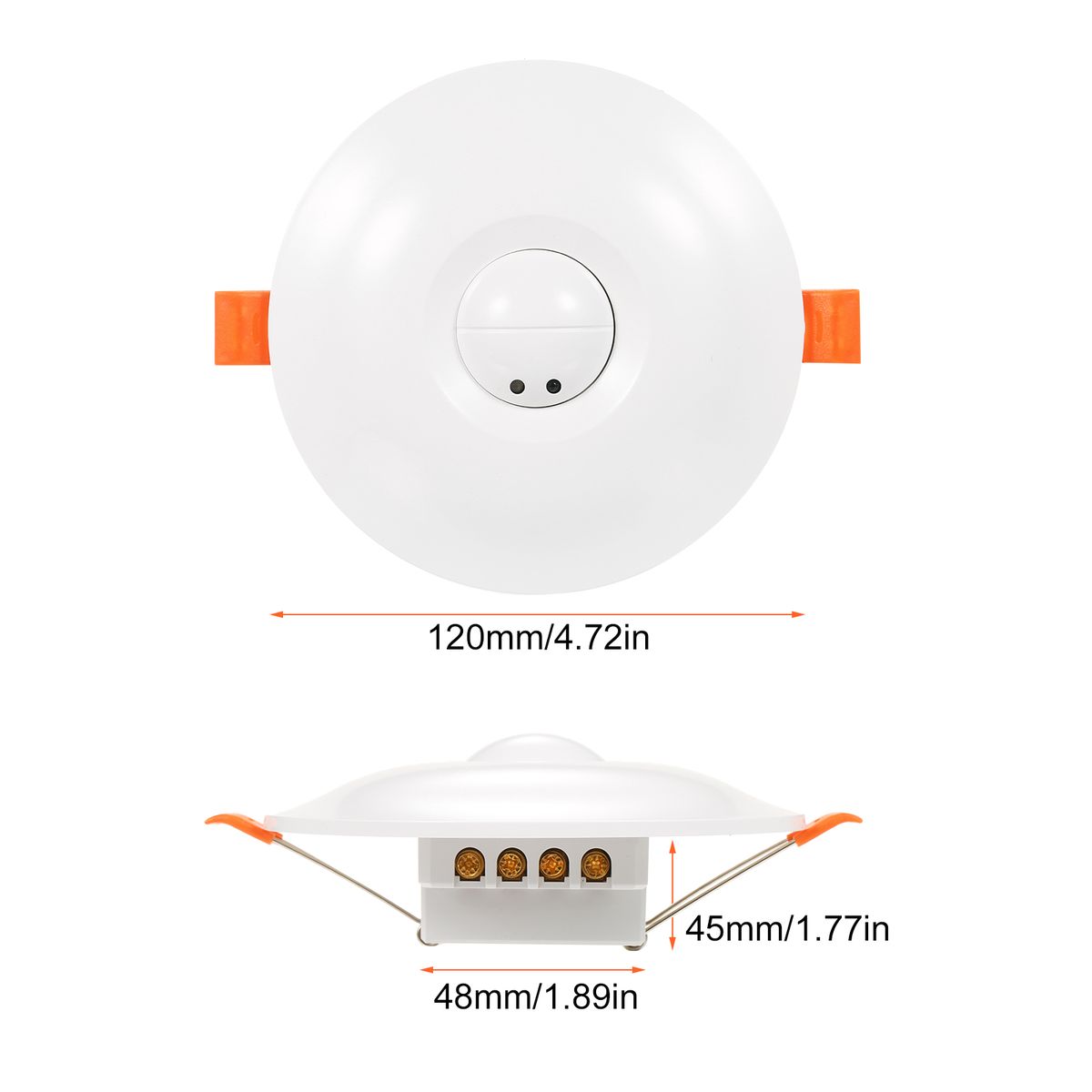 This small motion detector has a clean and modern profile with a classic round shape. The body housing is made with ABS material, gives a beautiful smooth finish. Standard white low profile allows this sensor to blend seamlessly into your ceiling.