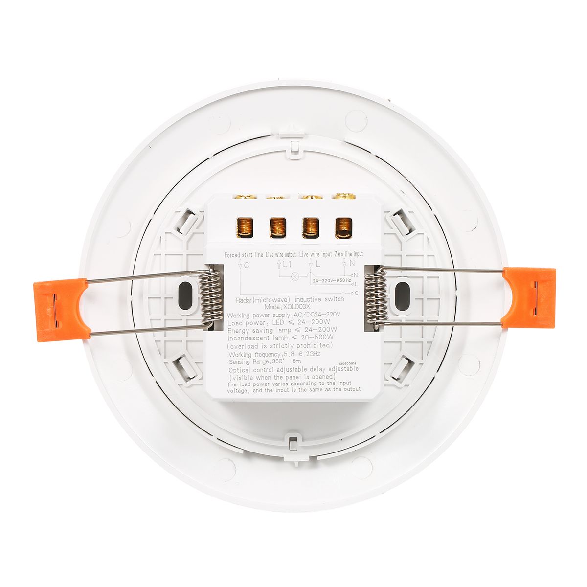 Ceiling mounted motion sensor features 360 degree detection with 6 meter sensing range; Radar waves are capable of glass, paper, plastic and thin wall.