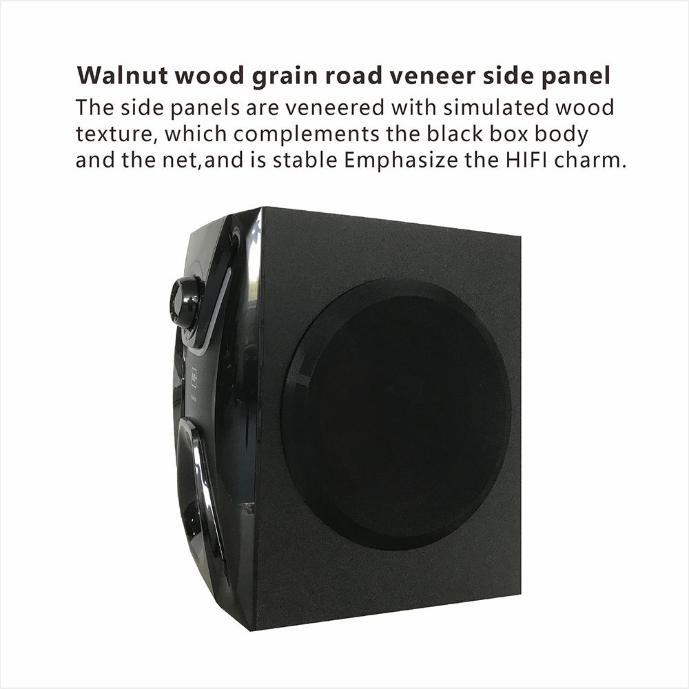 Equipped with a large bass unit and front phase inversion tube, it provides powerful bass and a panoramic sound field atmosphere. It is made with a 70mm double-fold ring cloth-edged cone and specially coated diaphragm, it makes high transparent and medium frequency mellow and full. It supports USB flash drive plug-n-play for quick and convenient operation. It's built-in 3.5mm audio jack has multiple compatibilities with PC, Laptop, TV, Mobile Phone, MP3 player, and other devices. The improved side panel is designed for the convenience of operation and connection making the speaker user-friendly.