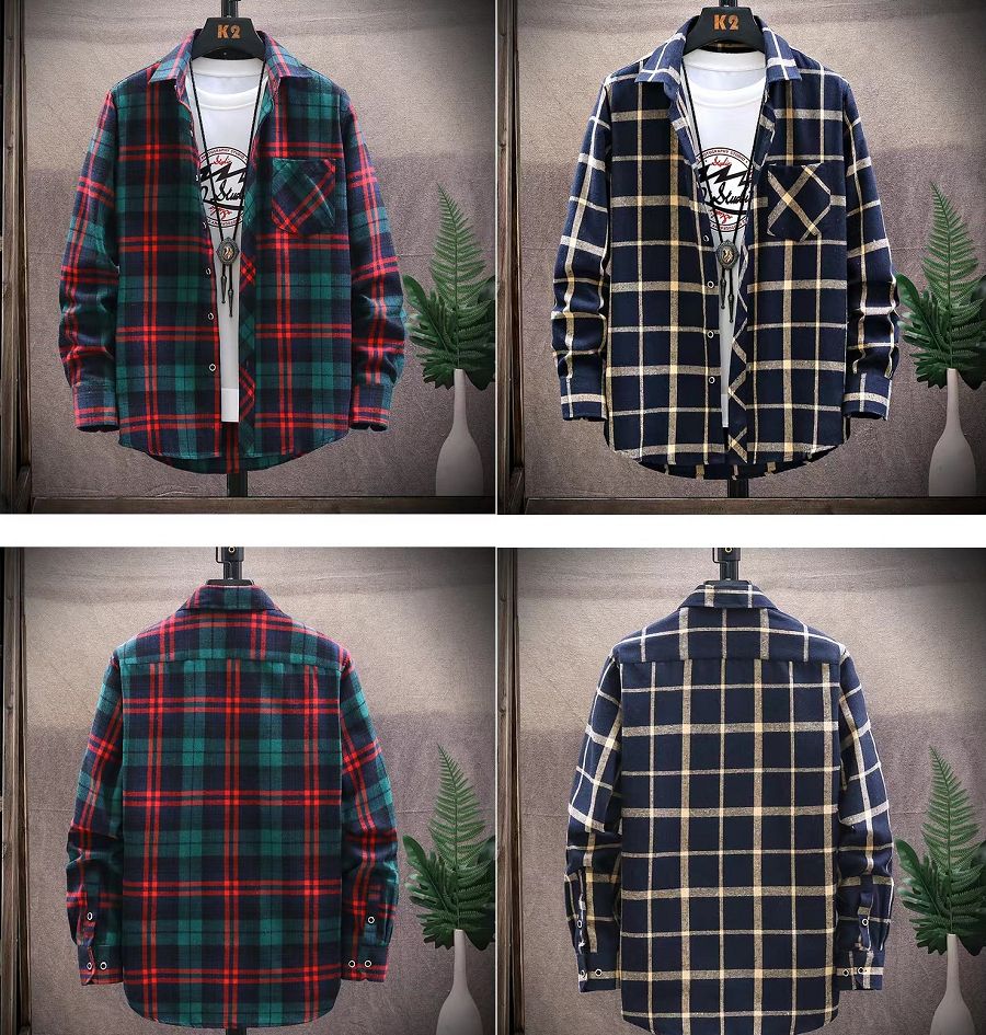 A piece of casual long sleeve checkered shirt for men, opp bag