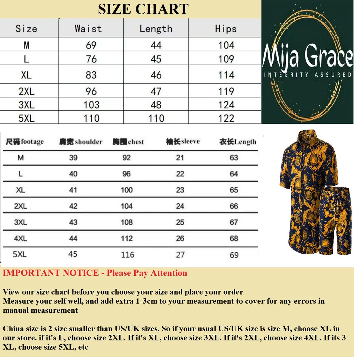 - Choose your size according to actual measurement as shown on our size chart, or if your Standard US Size is L we Suggest you Choose 2XL in Our Shop