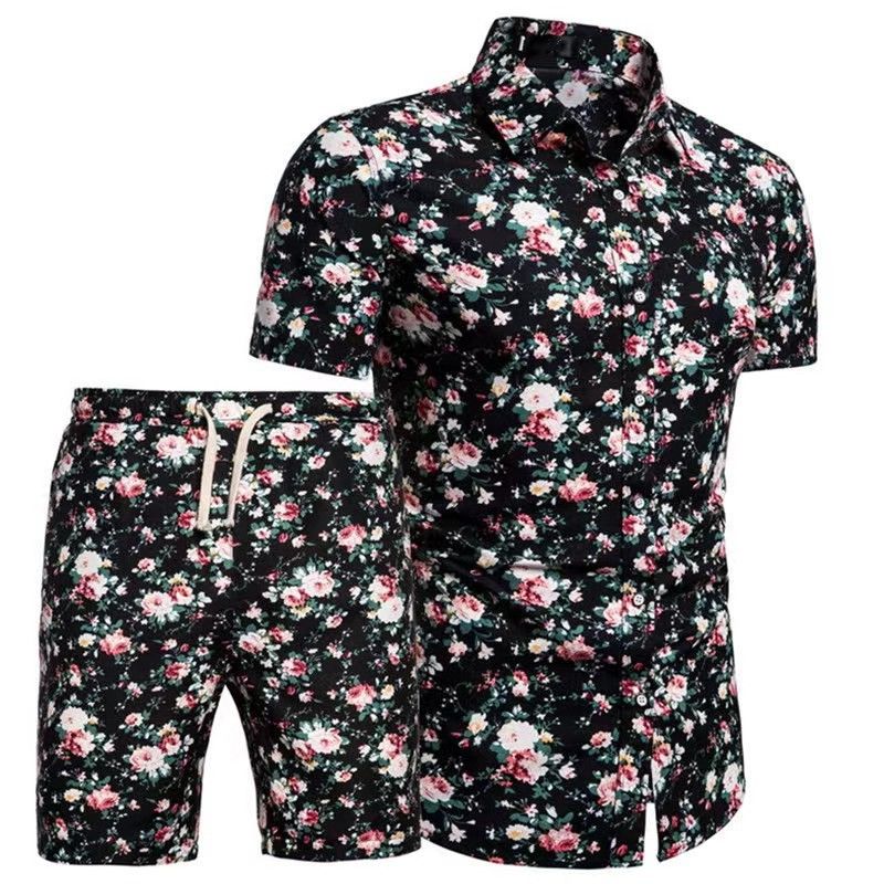 A pair of Floral Print Shirt & Shorts Set