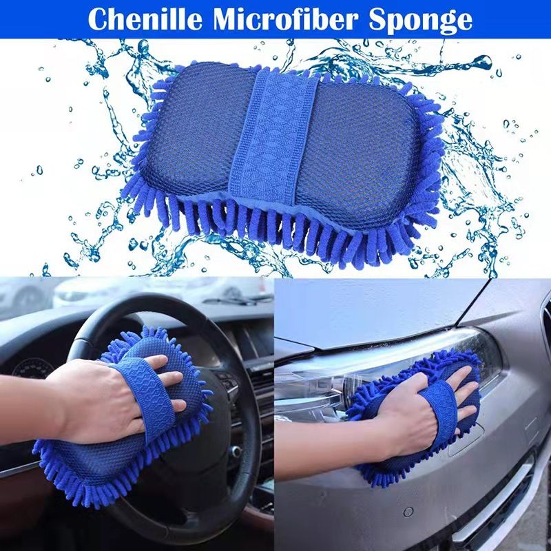 Sponge, Large size, BLUE. Our Macrofibre Sponge has Strong Water Absorbent, and doesn't hurt your the surfaces of your car, home and office equipment. With a high density chenille large surface area, it effectively sucks the dust away from the surfaces applied . This sponge has high water retention ability and can easily wipe surfaces clean. It's also light and comfortable which makes it easy for your five fingers to relax while using minimal force during cleaning. The middle Arc design fits smoothly into your palm width and easy for grasping.