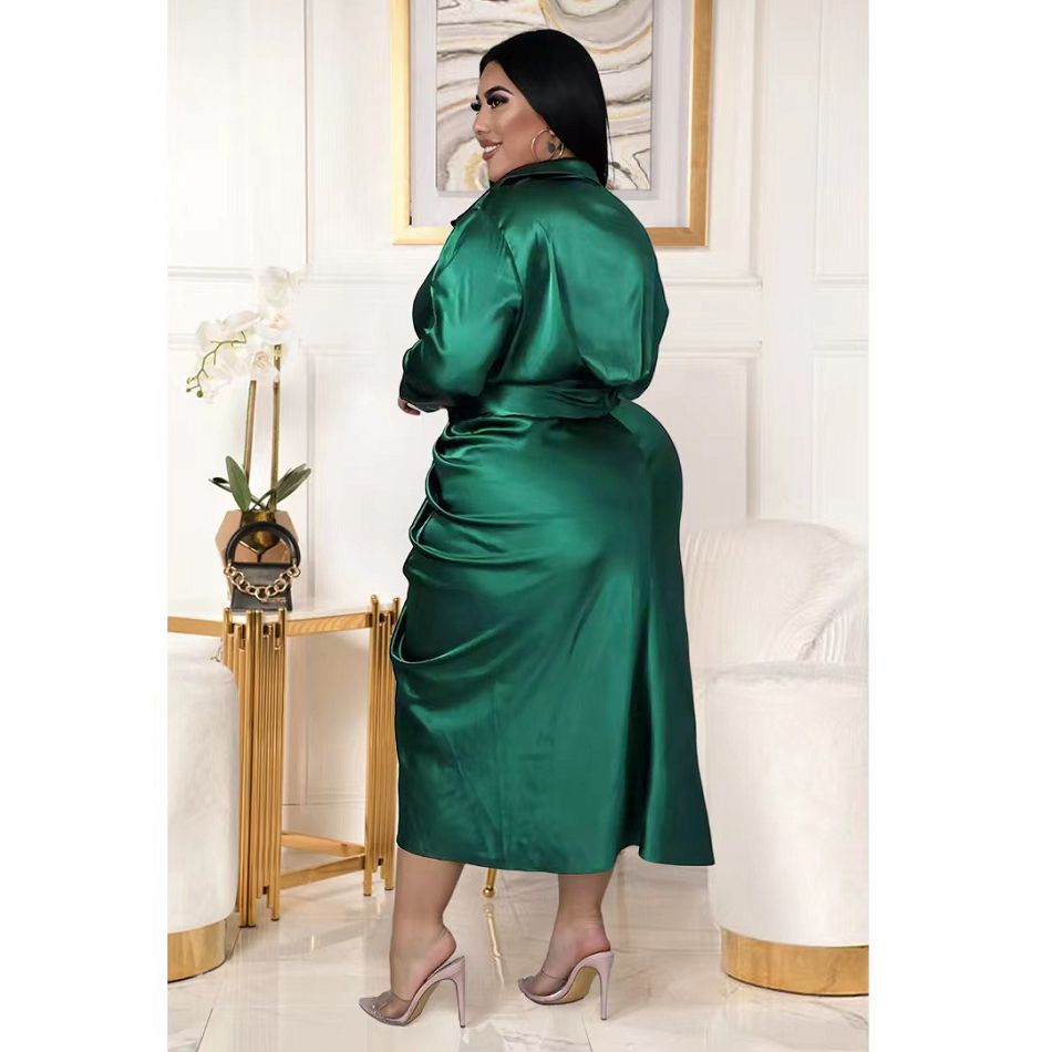 {MijaGrace} Women's Elegant Long Sleeve Pleat Satin Evening dress. Classy Midi dress for Office, Meeting, Social gathering, Events, Party, and daily outings. Made with Royalty love and care, Price just for you!!