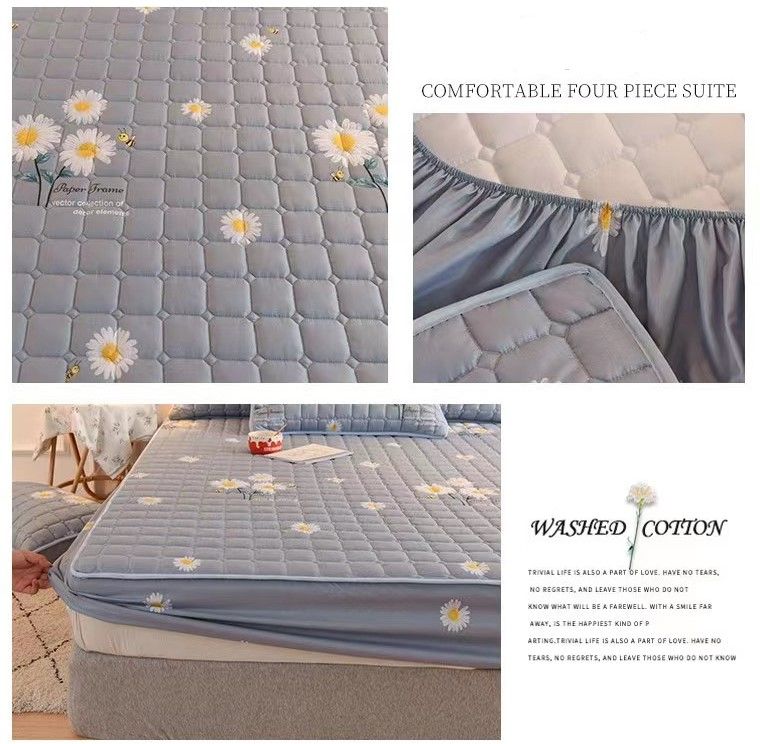 {MijaGrace}Washable Quilted Cotton Fill Mattress Protective Cover-Quilted Polycotton Printed fitted Bedspread Bed cover, Mattress Protective Cover, Bedsheet, Coverlet.
