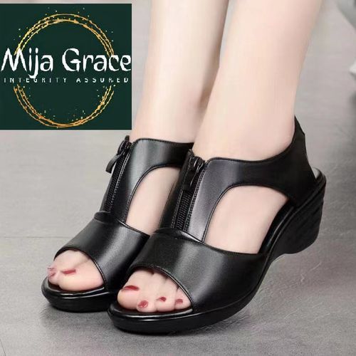 {MijaGrace} Women's Hollow Zipper Open Toe Fish Mouth Wedge Retro Ankle strap Sandals - for Outdoors, Daily-use, Casual fashion, Outings, Office, Daily use sandals. Made for Royals , Priced just right for you!!