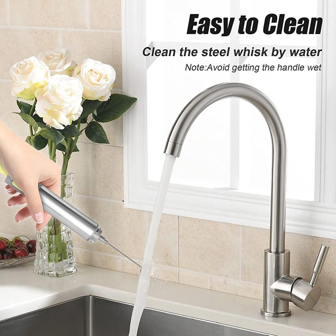 [Portable & Clean Easily]: Lightweight hand milk frother can can be folded and assembled, you can take it to anywhere. And it is easy to clean. Just put the whisk in running water, instantly clean!