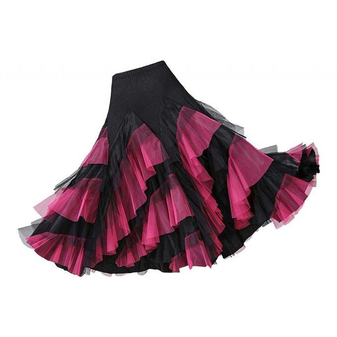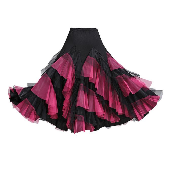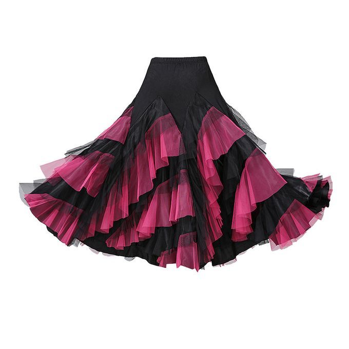 Flamenco Ballroom Waltz Dance Big Swing Skirt Womens Modern Costumes Black Rose Red