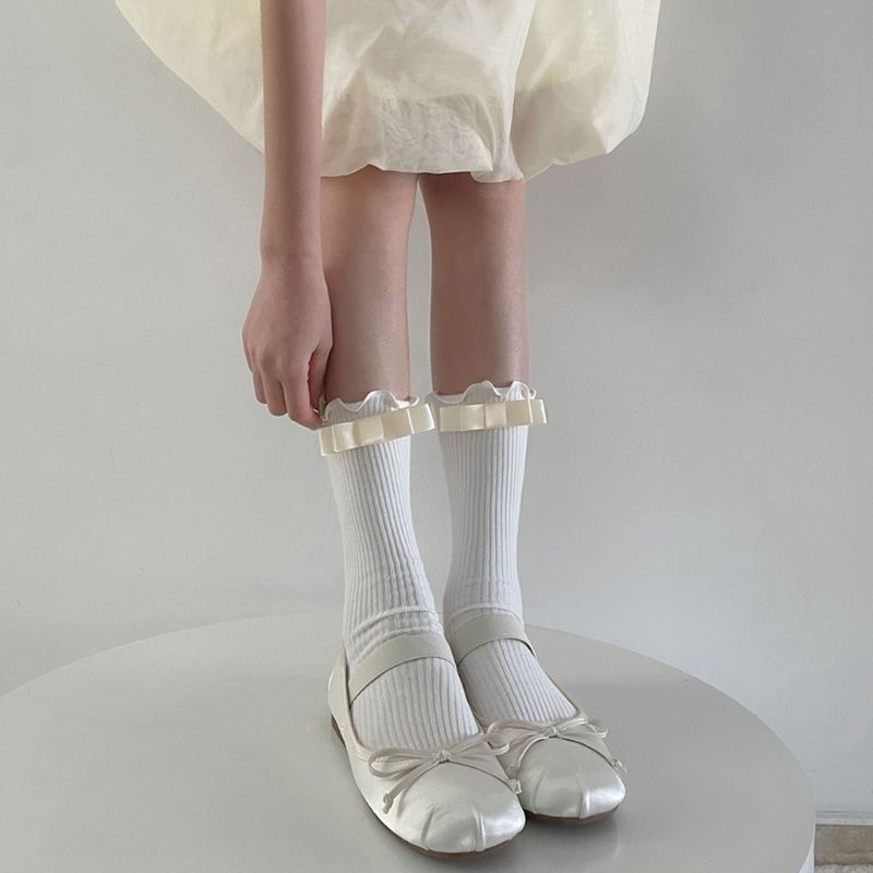 1X Ballet Sock Casual Wearing Lacy Cotton Short Stocking Solid Color Y2K Short Wear for Women Girl School