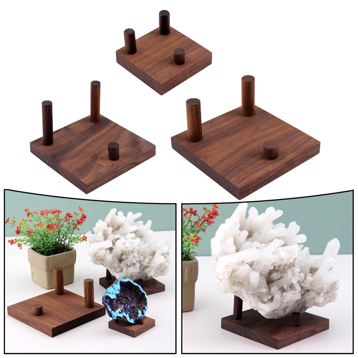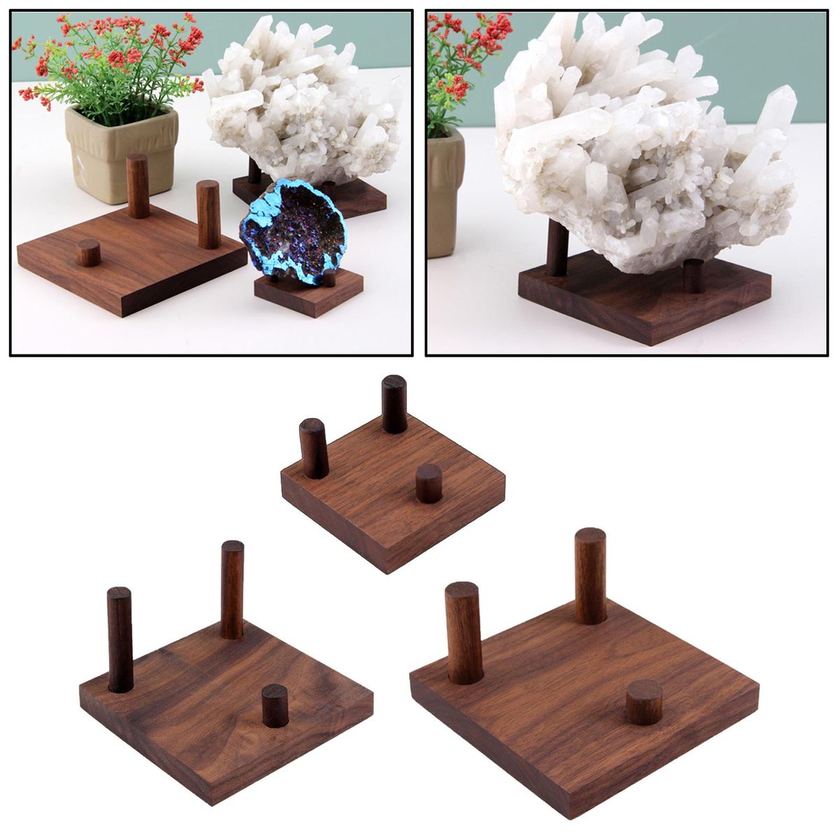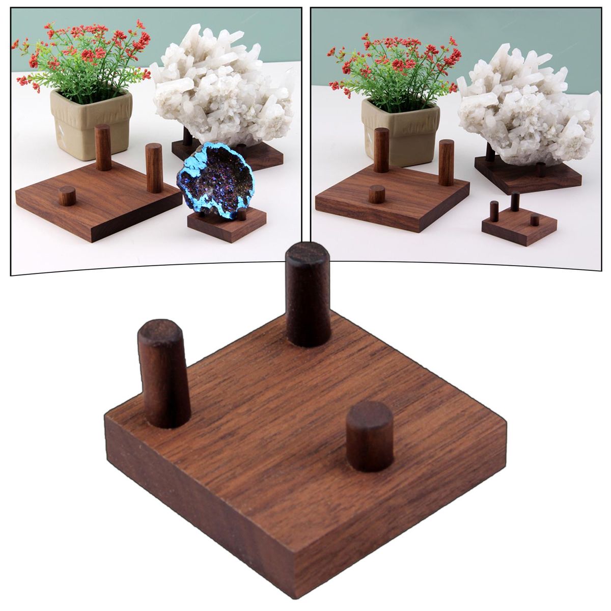 【Wood arm】: The tops of the wood to Display various collectible at home or office with these mini stands.