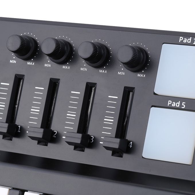 4 MIDI control groups.(4 assignable control knobs plus 4 assignable control sliders)