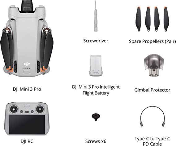 DJI Mini 3 Pro (DJI RC) - Lightweight and Foldable Camera Drone with 4K/60fps Video, 48MP Photo, 34-min Flight Time, Tri-Directional Obstacle Sensing, Ideal for Aerial Photography and Social Media